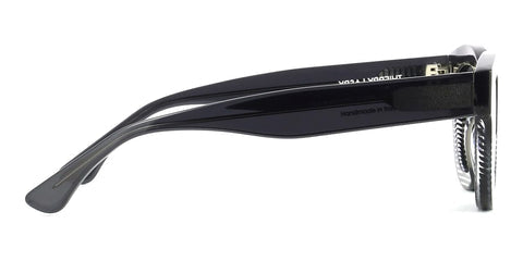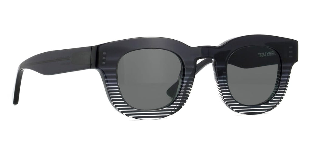 Black and clear striped gradient acetate sunglass frame with grey tint lenses.