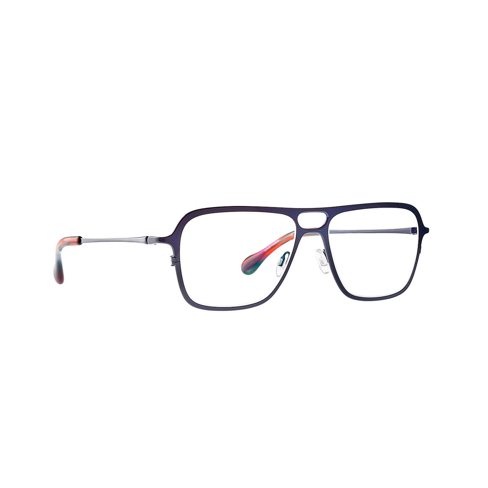 Navy blue metal aviator eyeglass frame from Theo's liquid elements series.